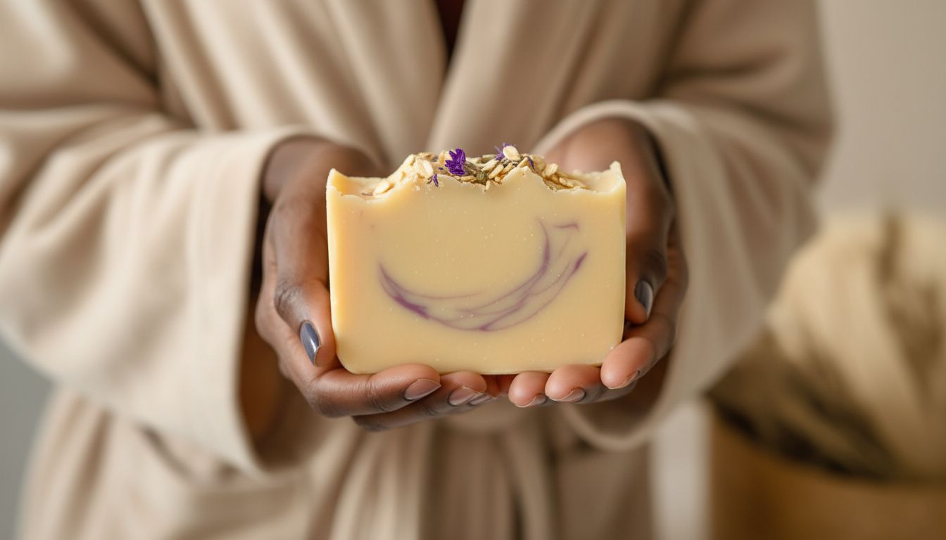 Gentle yet effective, this soothing soap combines the calming trio of chamomile, lavender, and colloidal oatmeal for a truly restorative cleanse. Delicate chamomile and serene lavender create a tranquil herbal blend that relaxes the senses, while finely milled oatmeal gently buffs away impurities and soothes sensitive skin. Perfect for daily use, this soap cleanses without stripping, leaving skin feeling soft, balanced, and peacefully refreshed.